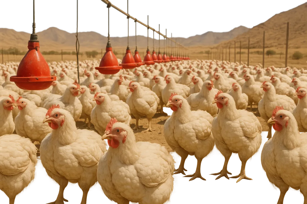 پرورش مرغ گوشتی در مناطق گرم و خشک ایران (مانند یزد، خوزستان، بوشهر، سیستان و بلوچستان) با چالشهای خاصی مواجه است. افزایش دما، کاهش اشتها، افت رشد، تلفات بالا و تنش گرمایی از مشکلات اصلی فارمها در این مناطق هستند.