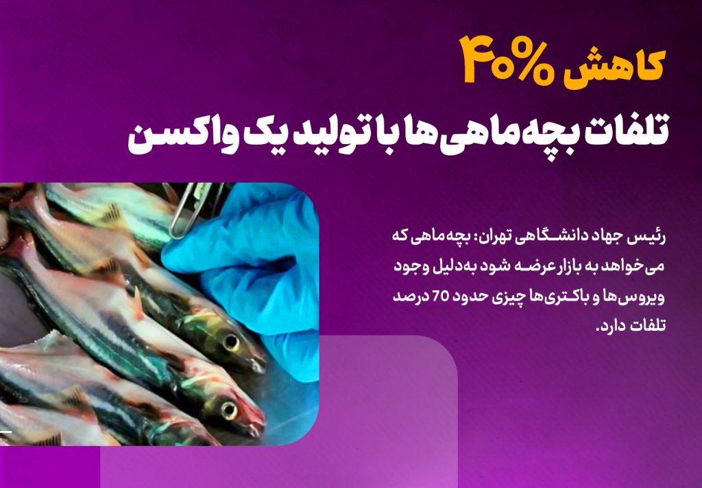 رئیس جهاد دانشگاهی تهران: بچهماهی که میخواهد به بازار عرضه شود بهدلیل وجود ویروسها و باکتریها چیزی حدود ۷۰ درصد تلفات دارد. جهاد دانشگاهی با ساخت یک واکسن، تلفات بچهماهی را به کمتر از ۳۰ درصد رسانده و این کار در نهایت میتواند نقش مهمی در افزایش امنیت غذایی ایفا کند.