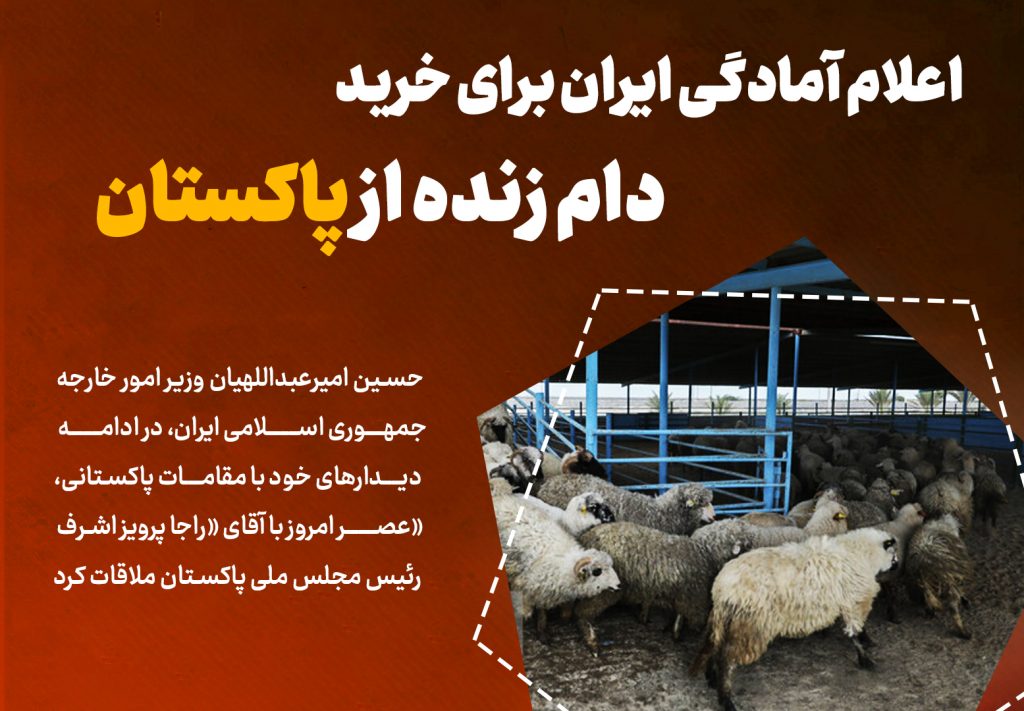 وی همچنین آمادگی کشورمان برای خرید دام زنده از پاکستان را اعلام کرد.