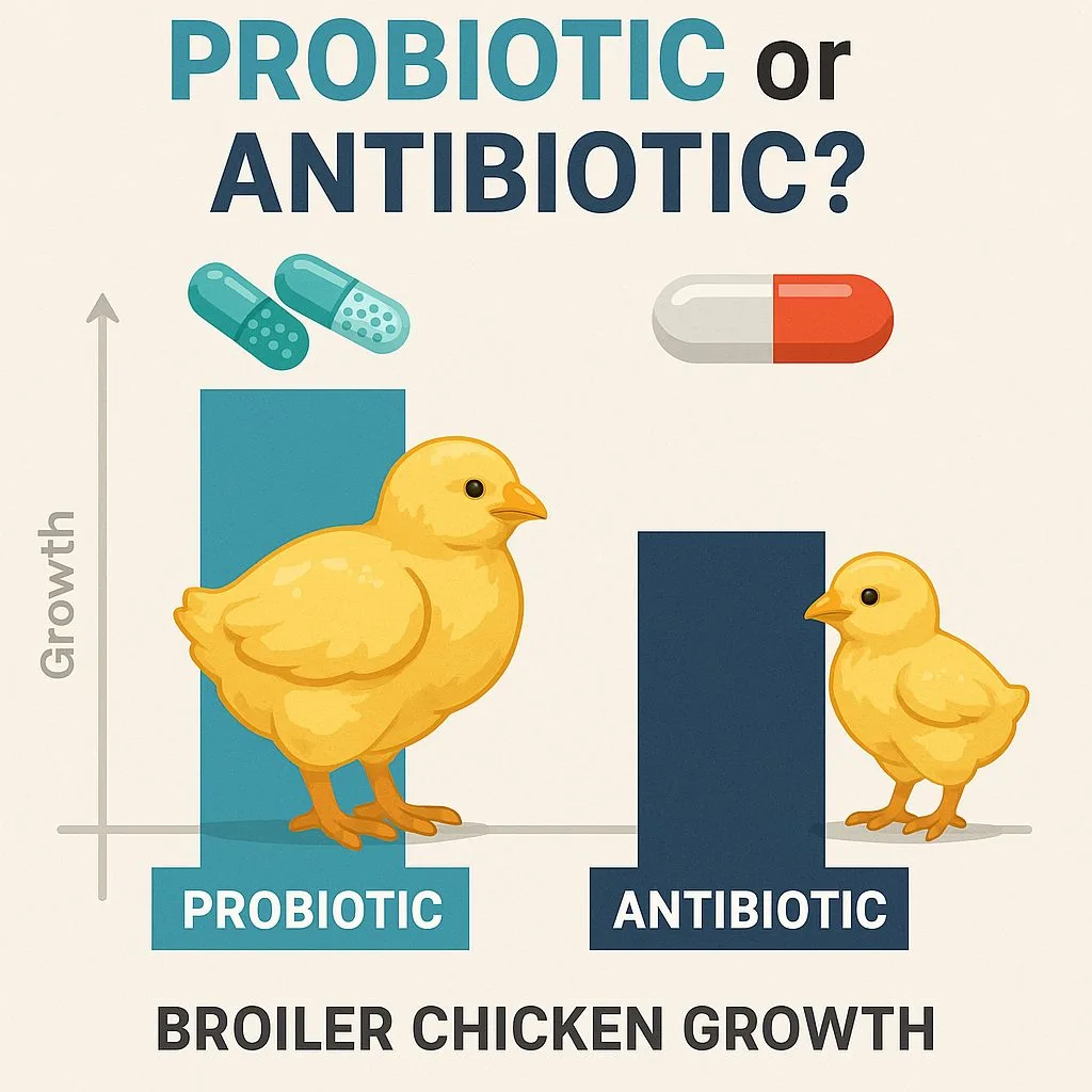 در حالی که آنتیبیوتیکها در گذشته نقش مهمی در افزایش رشد طیور ایفا میکردند، اما نگرانیهای بهداشتی و زیستمحیطی استفاده از آنها را محدود کرده است. پروبیوتیکها بهعنوان جایگزینی طبیعی، ایمن و مؤثر در حال جایگزینی با آنتیبیوتیکها هستند. پیشنهاد میشود پرورشدهندگان با مشورت متخصص تغذیه دام و طیور، از پروبیوتیکهای مناسب در جیره غذایی استفاده کنند تا سلامت و عملکرد گله بهینه شود.