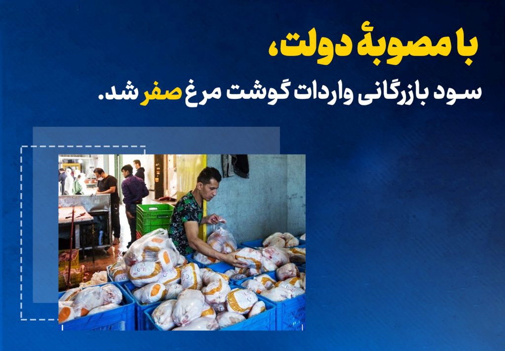 همچنین پنجشنبه ۲ مرداد رئیس جمهور قانون کاهش مالیات بر ارزش افزوده واردات کالاهای اساسی کشاورزی و دامی از جمله گوشت مرغ به یک درصد را به وزارت اقتصاد و سازمان برنامه و بودجه ابلاغ کرده بود. این قانون در ۵ تیر در مجلس به تصویب نمایندگان و در ۲۱ تیر به تأیید شورای نگهبان رسیده بود.